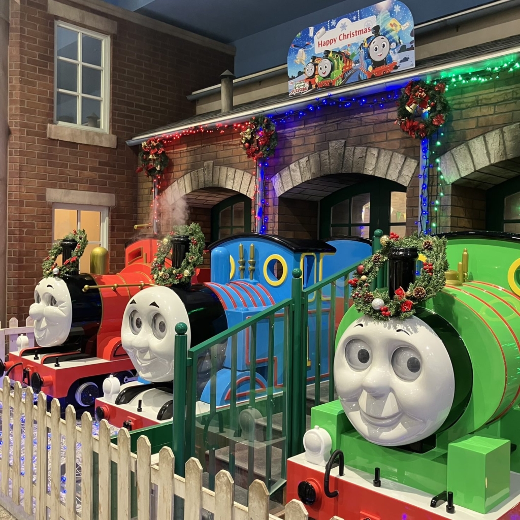 HAPPY CHRISTMAS★ トーマスタウンのハッピークリスマス開催中! ★★トーマスタウンのハッピークリスマス★★店頭に可愛いツリーのフォトスポットが登場!機関庫のトーマスたちのエントツにはリースがかかっていて映画のワンシーンのよう!トーマスたちと記念写真を撮ろう! 店内には映画の中のクリスマスソングが流れているよ!みんなで「だいだいだいすきクリスマス」をうたおう♪♪♪遊びに来てね!