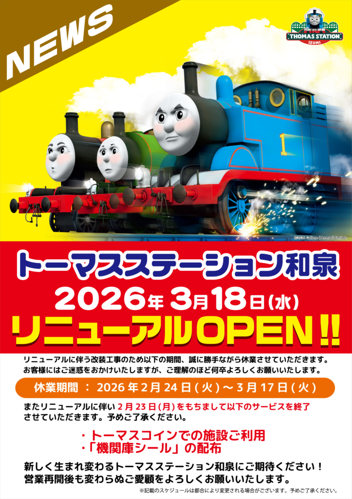 トーマスステーション和泉は、3月18日リニューアルオープンいたします!